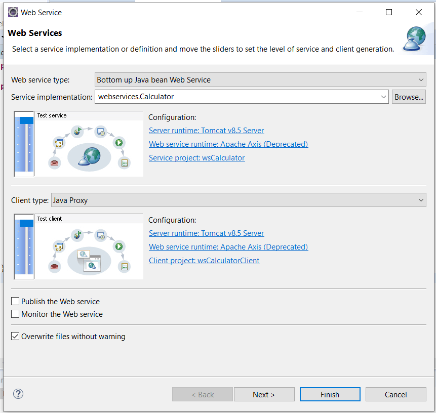 - The wsdl file is generated and save in the folder of: webcontent/wsdl/Calculator.wsdl